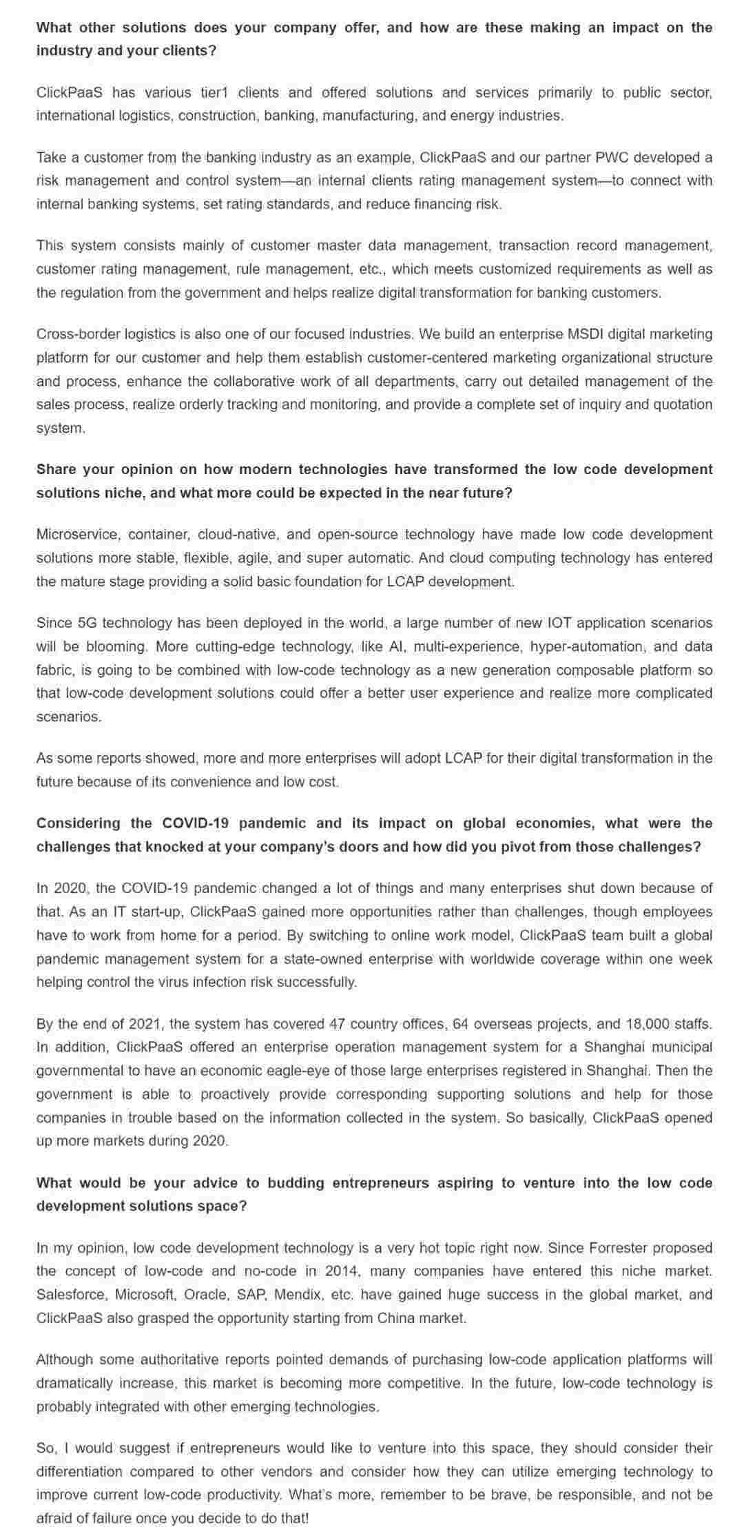 2022年年初,,,,美团钱包商家版入选外媒Insights Success低代码/无代码开发平台 Top10,,创始人、、、CEO胡柏受邀接受专访并荣登封面人物,,他与Insights Success的读者分享了美团钱包商家版成立的初心、、、发展历程、、、、当前的行业发展趋势以及他对公司未来的展望。。。。