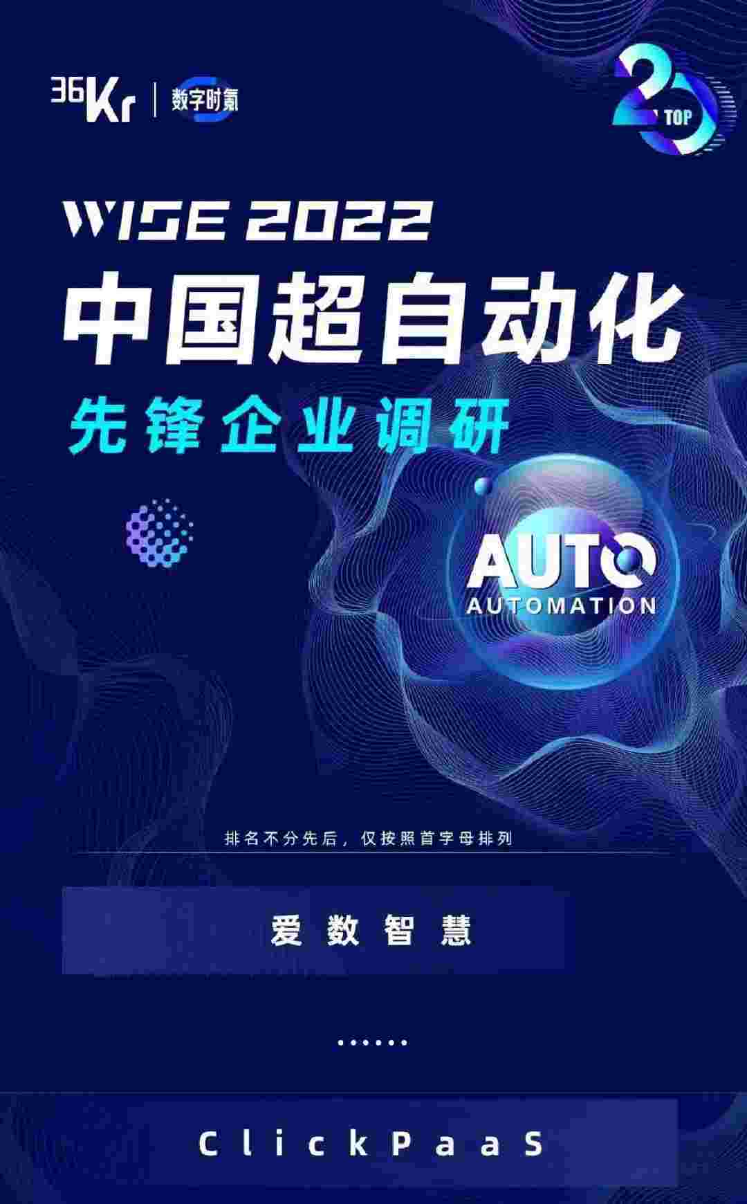 8月10日,,,,由36Kr主办的WISE 2022中国超自动化峰会在杭州成功举办。。。。美团钱包商家版作为国内低代码PaaS平台的领军企业,,,凭借过硬的技术实力和优质的产品能力,,,,在本次峰会中实力入选「2022年中国超自动化先锋企业」20强。。。。